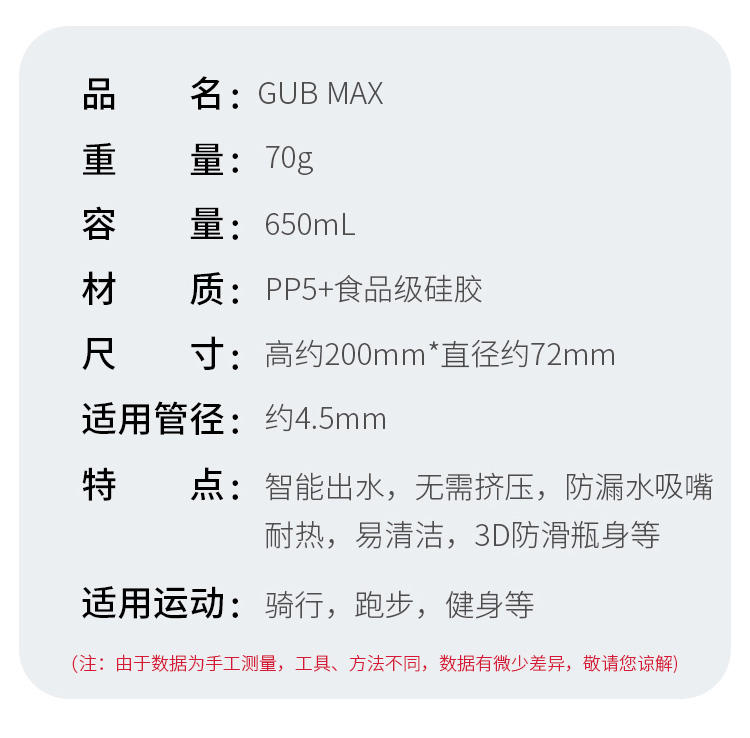 簡介:智能出水,無需擠壓,防漏水吸嘴,耐熱易清潔,3D防滑瓶身等