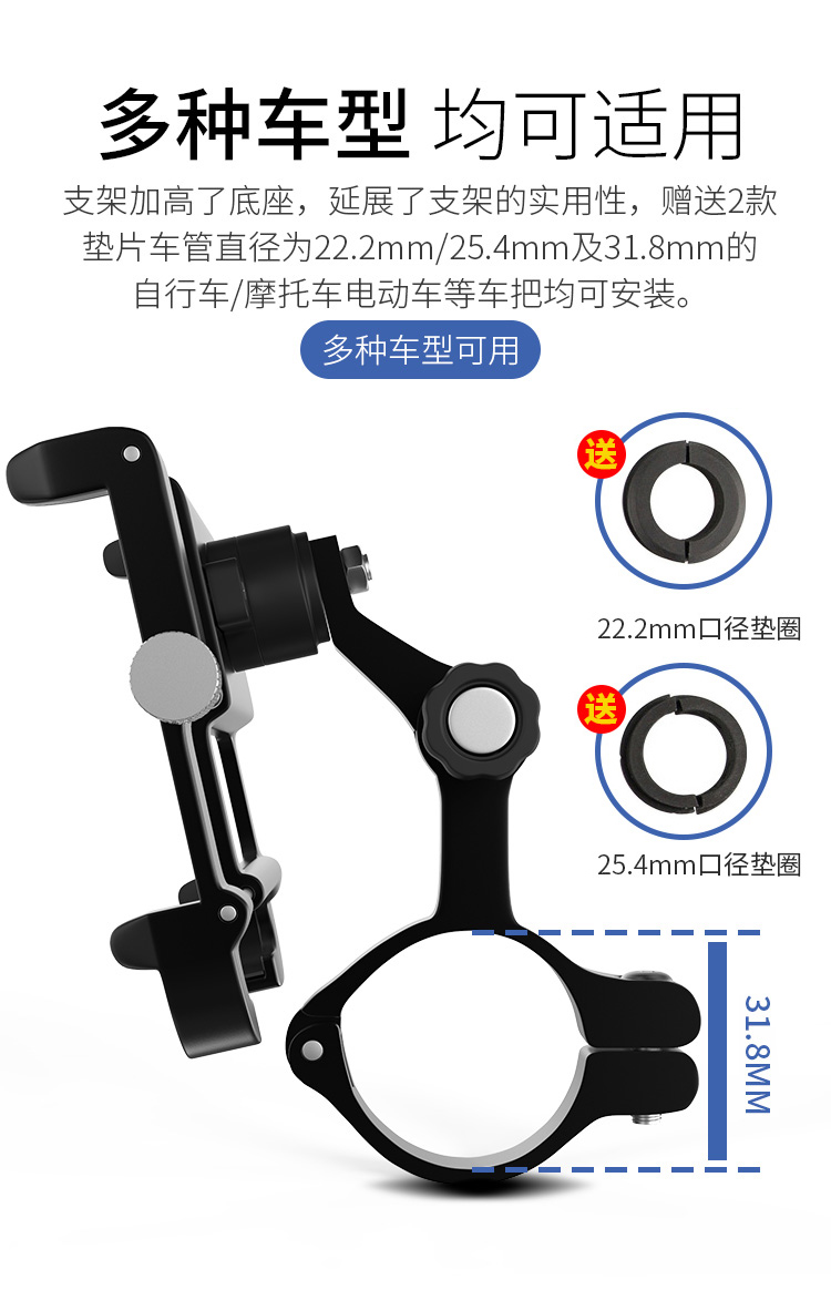 特點(diǎn):全鋁合金架體,雙重調(diào)節(jié),支持前后角度及平面360度調(diào)節(jié),支持手機(jī)架垂直固定,讓手機(jī)秒變運(yùn)動(dòng)相機(jī),記錄一路精彩!高兼容性不挑手機(jī)型號(hào),自行車(chē)、電動(dòng)車(chē)等都可使用!