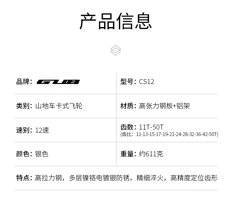 名稱:GUB CS12(11-50T)山地車飛輪