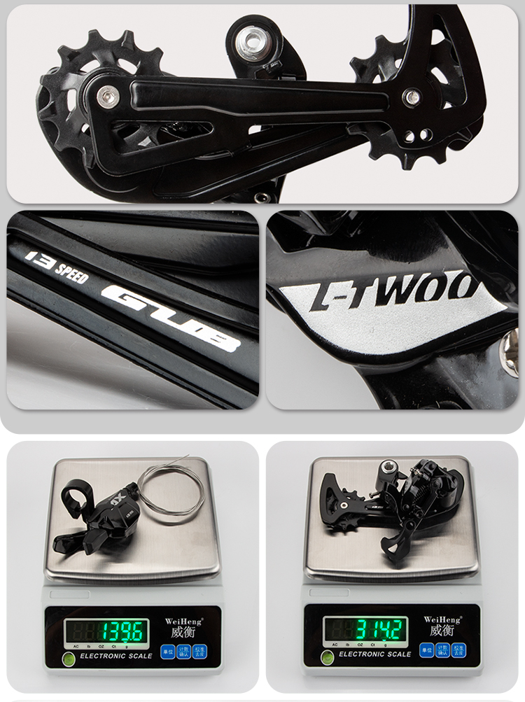 后撥:13速加長腿直裝后撥,影子后撥設計,加大軸承導輪,最大兼容52T飛輪