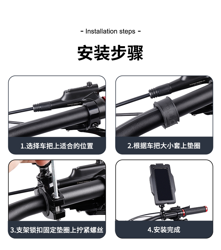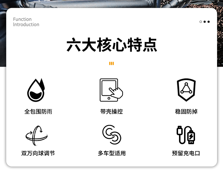 特點(diǎn):鋁合金支撐架,全封閉手機(jī)盒,防雨無憂,高兼容性不挑手機(jī)型號(hào),摩托車、電動(dòng)車等都可使用,滿足多場(chǎng)景使用需求。