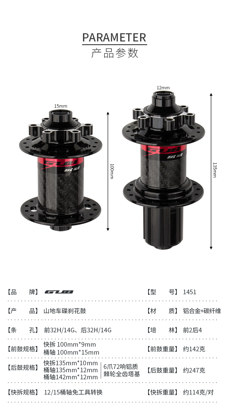 產(chǎn)品:GUB 1451 碳纖維碟剎花鼓