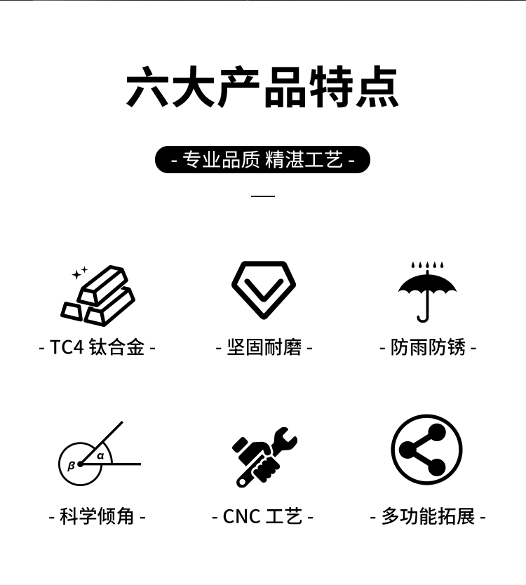 材質(zhì):鈦合金(支架+運(yùn)動(dòng)相機(jī)座),塑料(轉(zhuǎn)接座等)