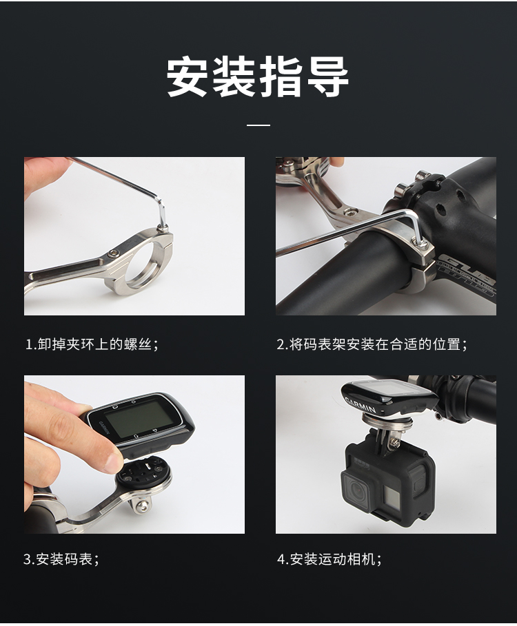 配置:配運(yùn)動(dòng)相機(jī)轉(zhuǎn)接座,wahoo、佳明、百銳騰和貓眼碼表接座、25.4mm墊圈一對(duì)