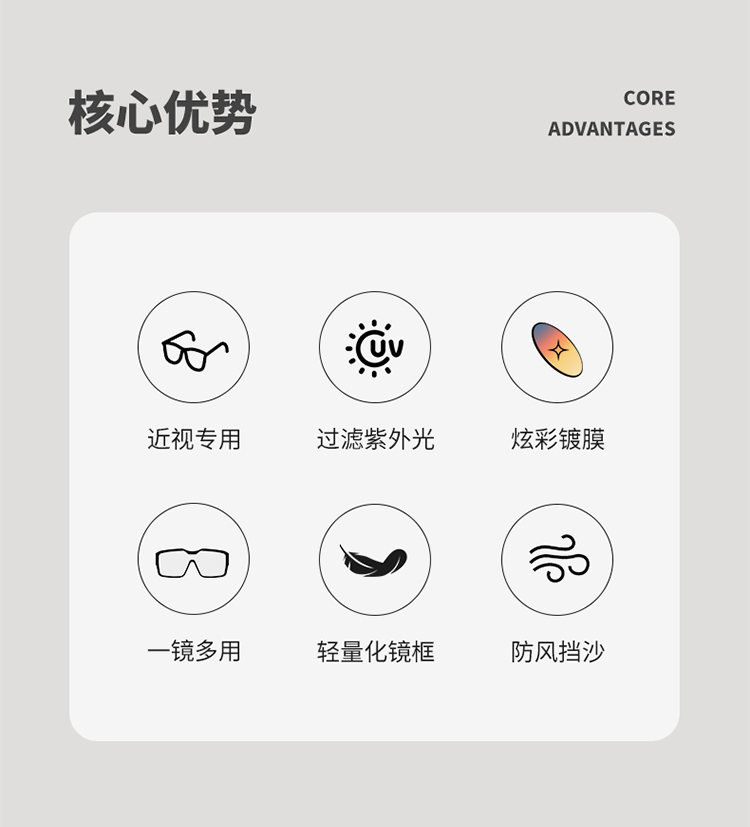 顏色:啞黑/偏光石榴紅、亮白/偏光白冰藍(lán)、啞黑/偏光水銀、亮白/偏光冰粉、水晶灰/偏光金色