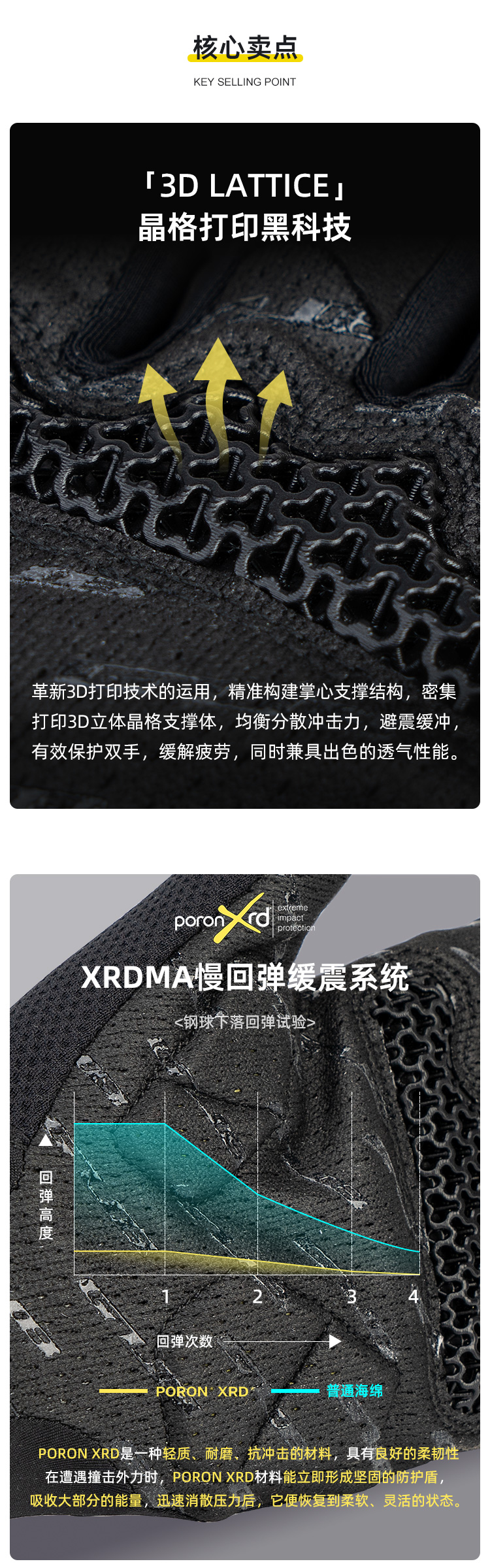 材質(zhì):意大利Carvico(石墨灰)、牛奶絲手背面料(黑色)、3D打印TPU掌墊、進口PORON XRD緩沖掌墊、韓國大孔PU掌面、韓國Aerosilver抗菌面料(擦汗布)
