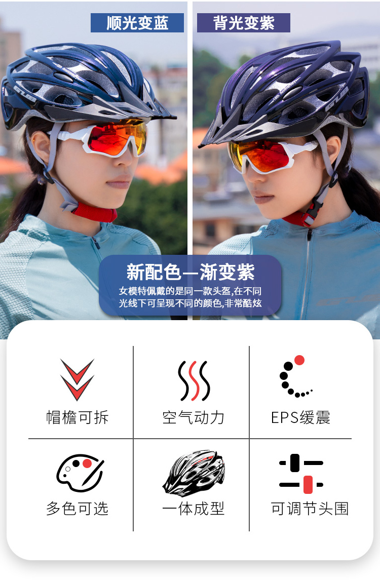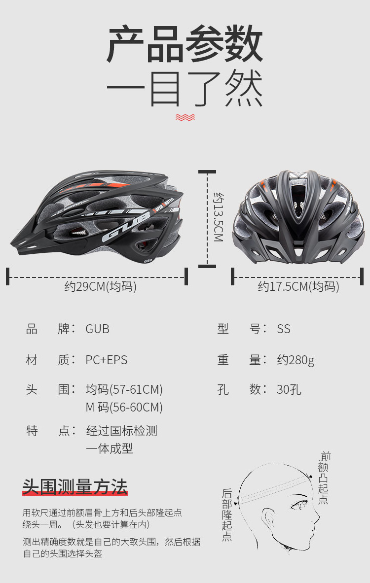 材質(zhì):PC帽殼、EPS帽體