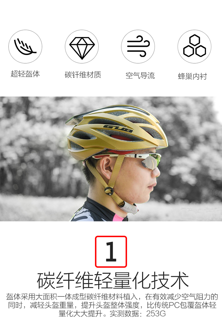 材質(zhì):帽殼(PC)帽體(EPS)+碳纖維尾翼