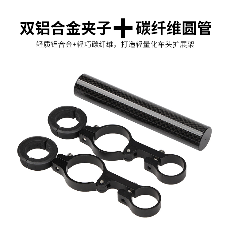 說明:本品拆卸只需拆掉延伸架,方便快捷,碳纖維圓管(長度達(dá)130mm),突破空間限制,讓您的車頭逼格更高!