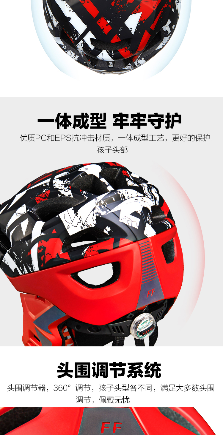 特色:全盔半盔自由切換,加長(zhǎng)帽檐貼心保護(hù)孩子的眼睛,酷炫反光標(biāo)涂裝讓騎行更酷更有樂趣,同時(shí)頭圍調(diào)節(jié)系統(tǒng)自帶的尾燈起到警示作用,讓孩子的夜騎更安全。