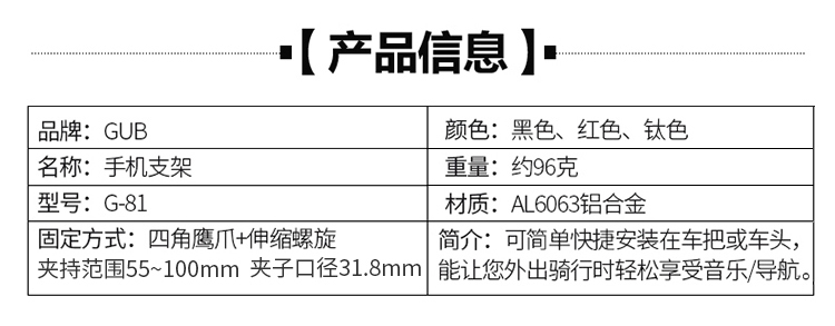 名稱:GUB G-81 鋁合金手機(jī)支架