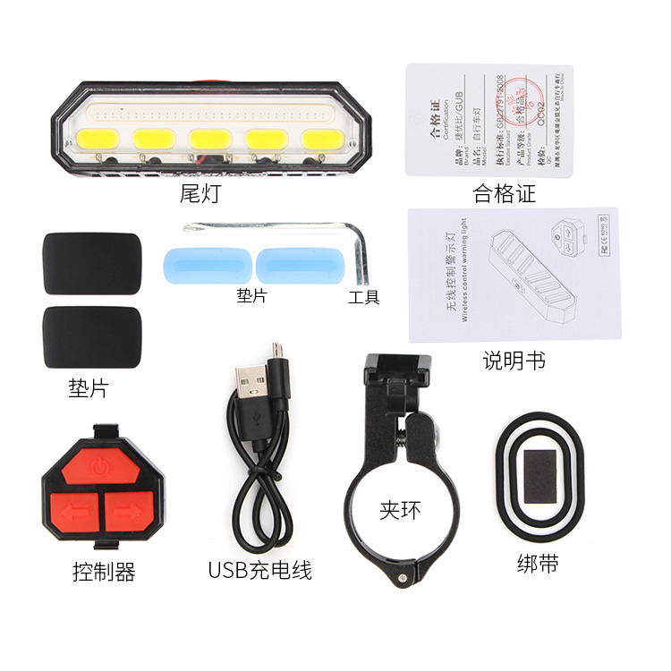 重量:約50克(尾燈)、約13克(遙控器)、約125克(總毛重)