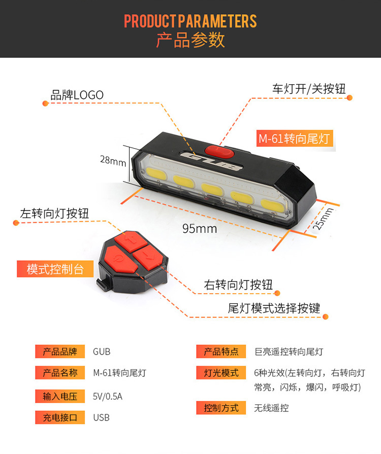 名稱:GUB M-61 遙控尾燈