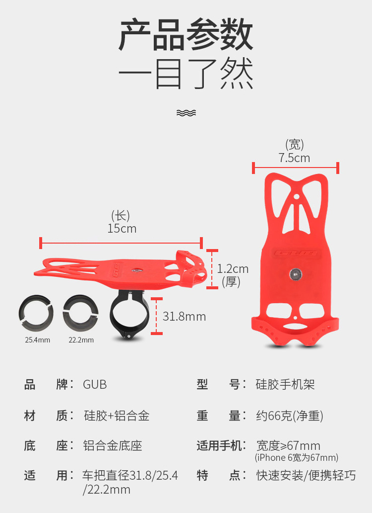 重量:約65克(單手機(jī)架)/約106克(毛重)