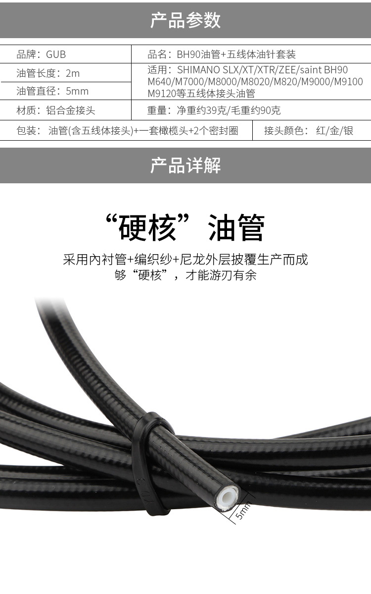 適用:SHIMANO SLX/XT/XTR/ZEE/saint BH90/M640/M7000/M8000/M8020/M820/M9000/M9100/M9120等五線體接頭油管