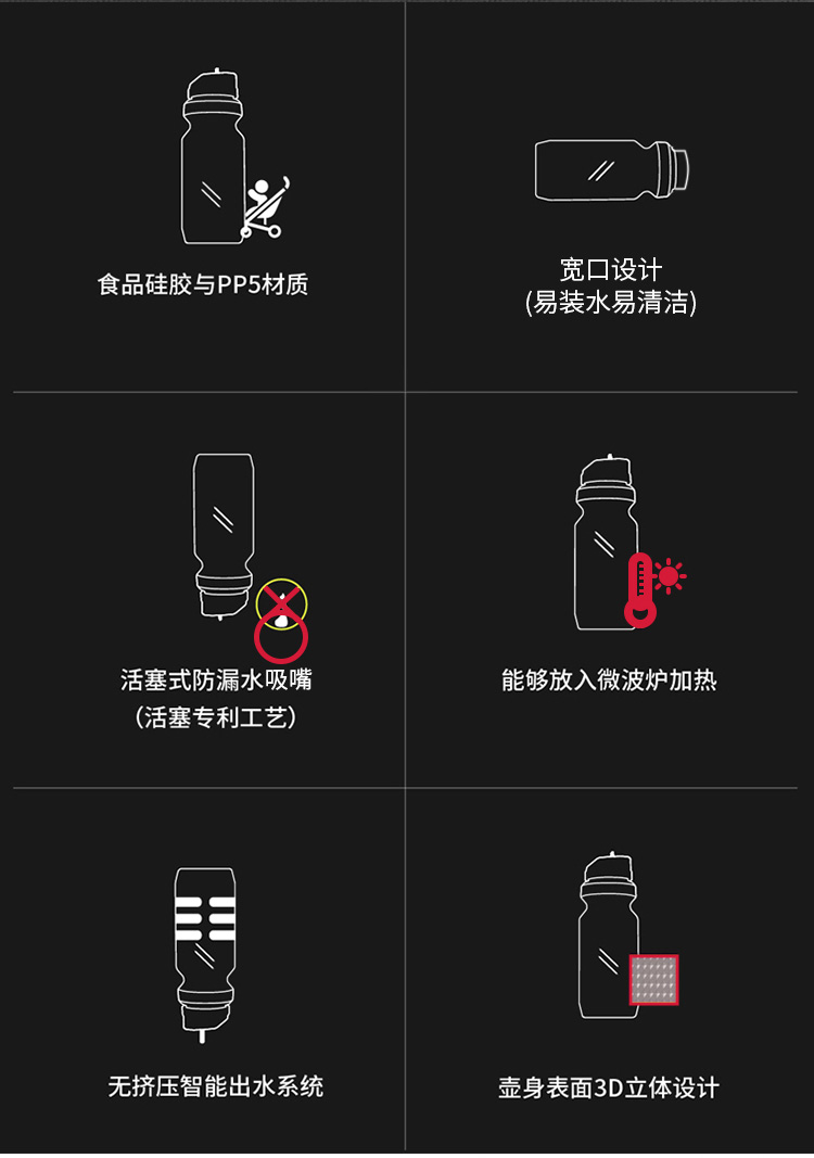 簡(jiǎn)介:智能出水,無需擠壓,防漏水吸嘴,耐熱易清潔,3D防滑瓶身等