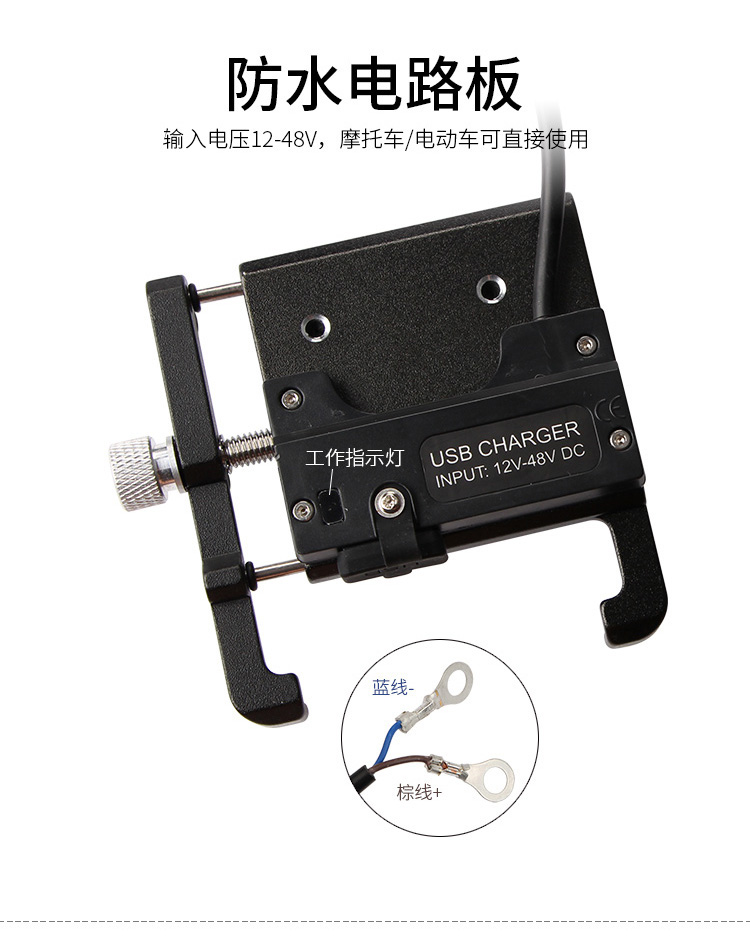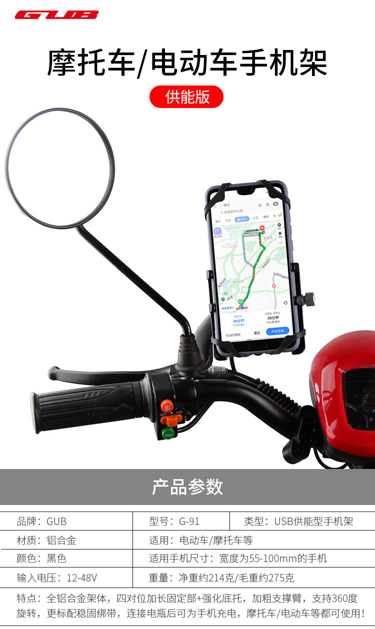 特點(diǎn):全鋁合金架體,四對位加長固定部+強(qiáng)化底托,加粗支撐臂,支持360度旋轉(zhuǎn),更標(biāo)配穩(wěn)固綁帶,連接電瓶后可為手機(jī)充電,摩托車/電動車等都可使用!