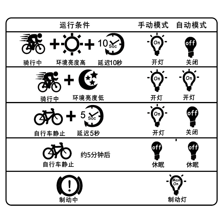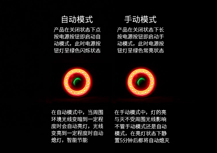 燈光模式:常亮、閃亮、爆閃、呼吸