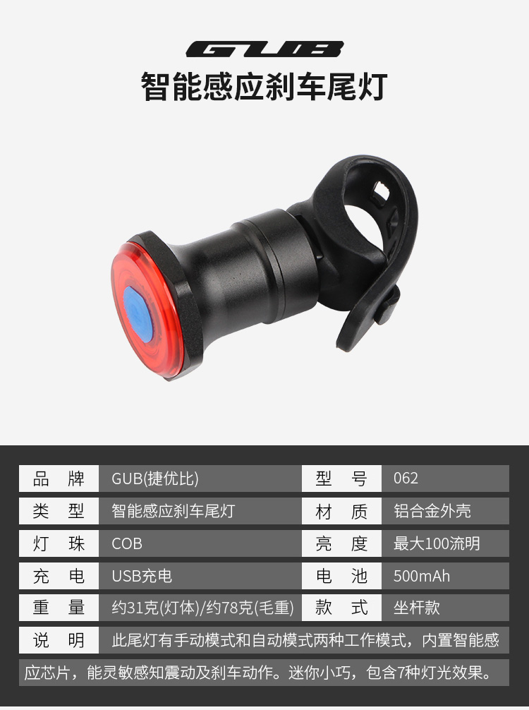 名稱:GUB 062 智能感應(yīng)剎車尾燈(座桿款)