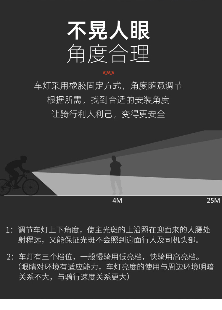 燈光模式:低亮/中亮/高亮/閃亮/SOS