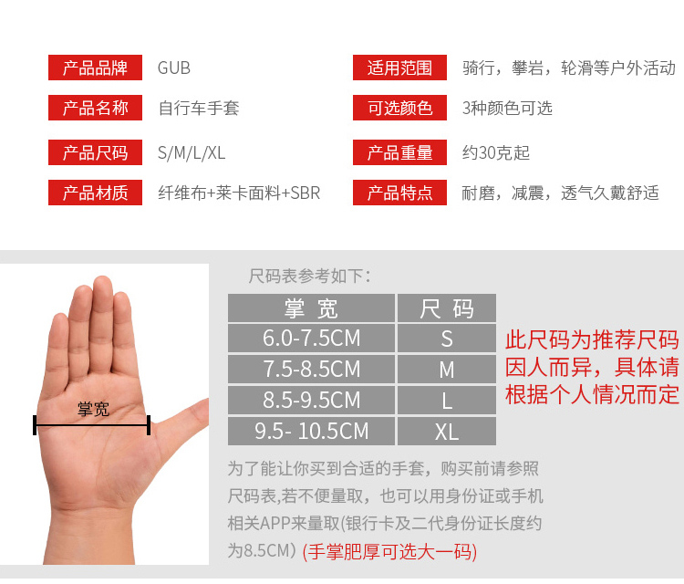 名稱:GUB S058 騎行手套