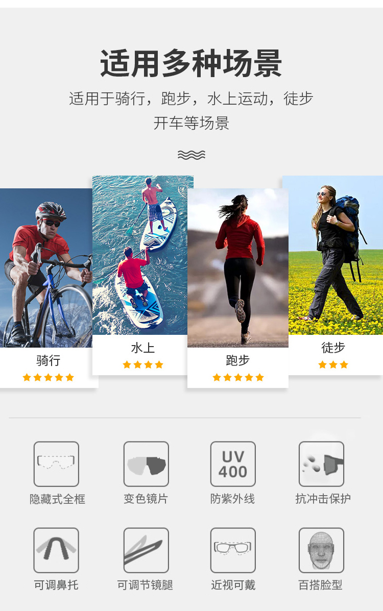 類型:時尚騎行眼鏡(變色鏡片)