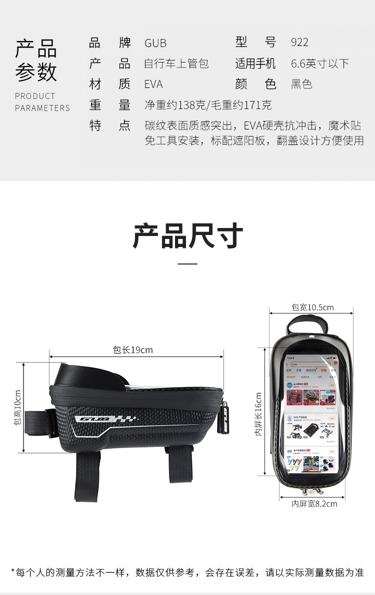 產(chǎn)品:GUB 922 自行車上管包