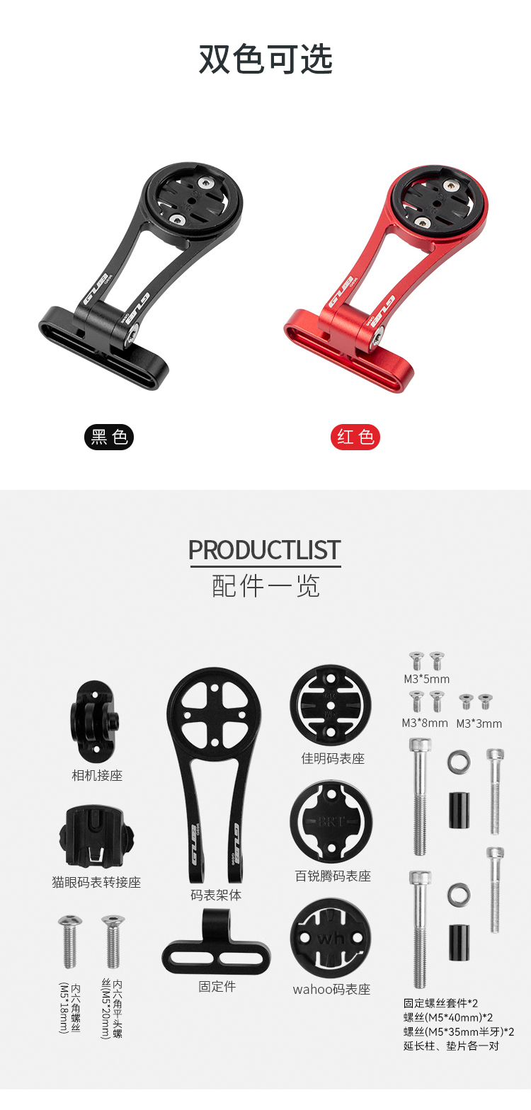 配置:配運(yùn)動(dòng)相機(jī)轉(zhuǎn)接座,wahoo、佳明、百銳騰和貓眼碼表接座