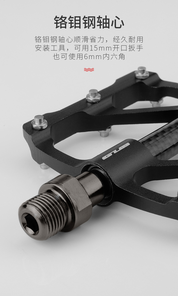 材質(zhì):鋁合金腳踏主體+碳纖維軸套+鉻鉬鋼軸芯