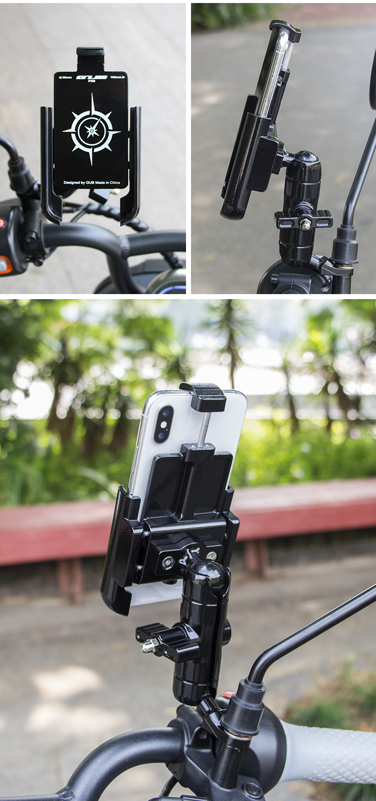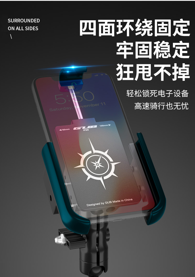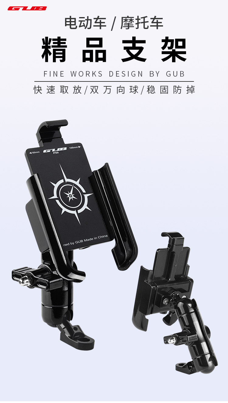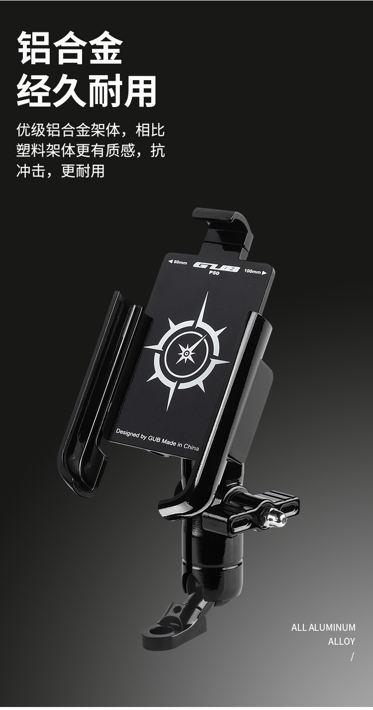 GUB P50 鋁合金手機支架(后視鏡款)