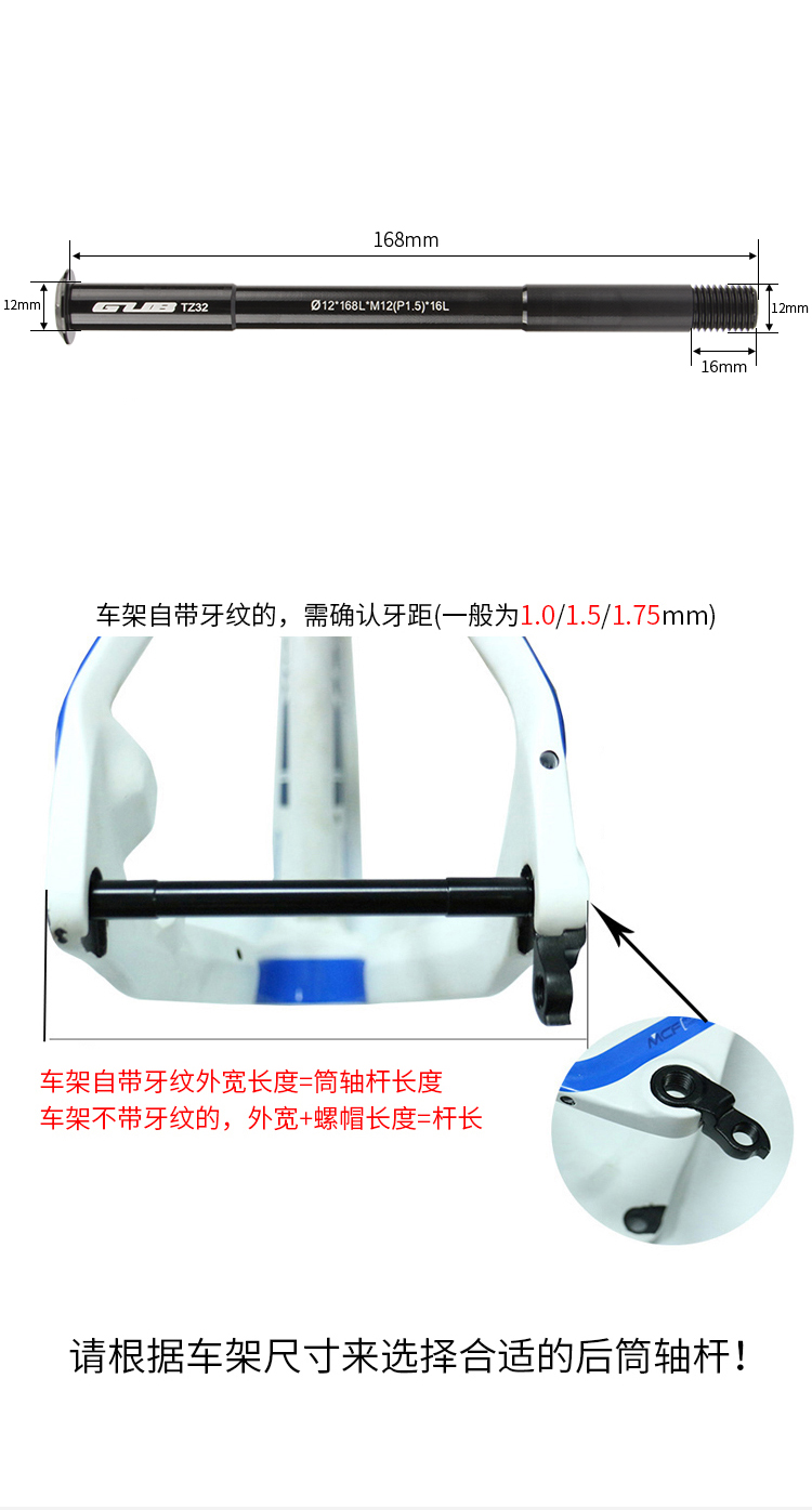 說(shuō)明:請(qǐng)根據(jù)前叉和車(chē)架尺寸選擇合適的桶軸桿!