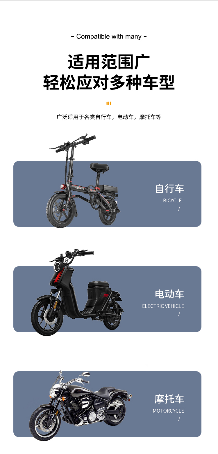 適用:摩托車/電動車/自行車等
