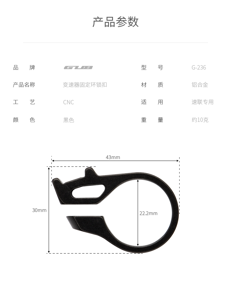 名稱:GUB G-236 指撥扣 材質(zhì):鋁合金 適用:SRAM/速聯(lián)專用 重量:凈重約10克/毛重約14克 統(tǒng)一零售價:18元
