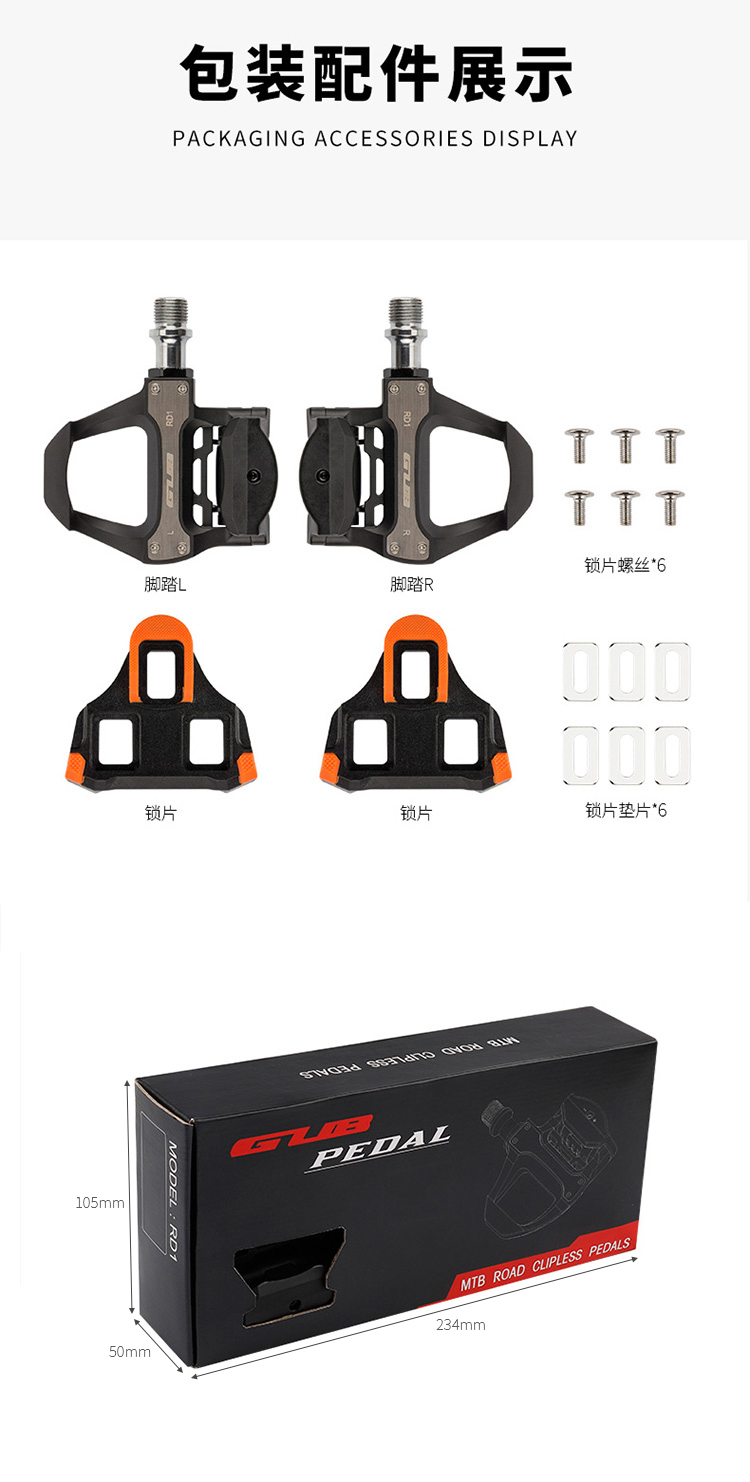 名稱:GUB RD1 公路車自鎖鎖踏 適用類型:公路車 材質(zhì):工程塑料+鉻鉬鋼軸芯 重量:凈重約291克/對、毛重約462克 統(tǒng)一零售價:158元