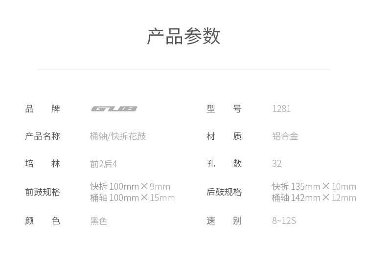 產品:GUB 1281 山地車鋁合金花鼓 材質:鋁合金 條孔:前后32H 培林:前2后4 顏色:黑色 毛重:約705克 統(tǒng)一零售價:288元 跨境平臺限價:$