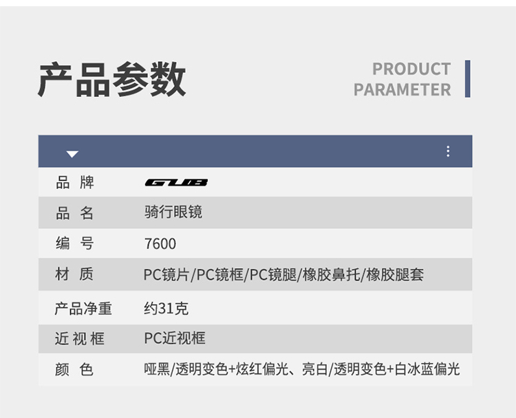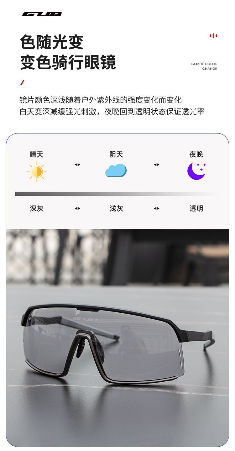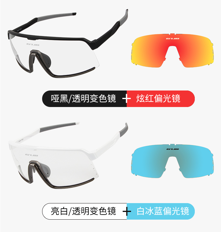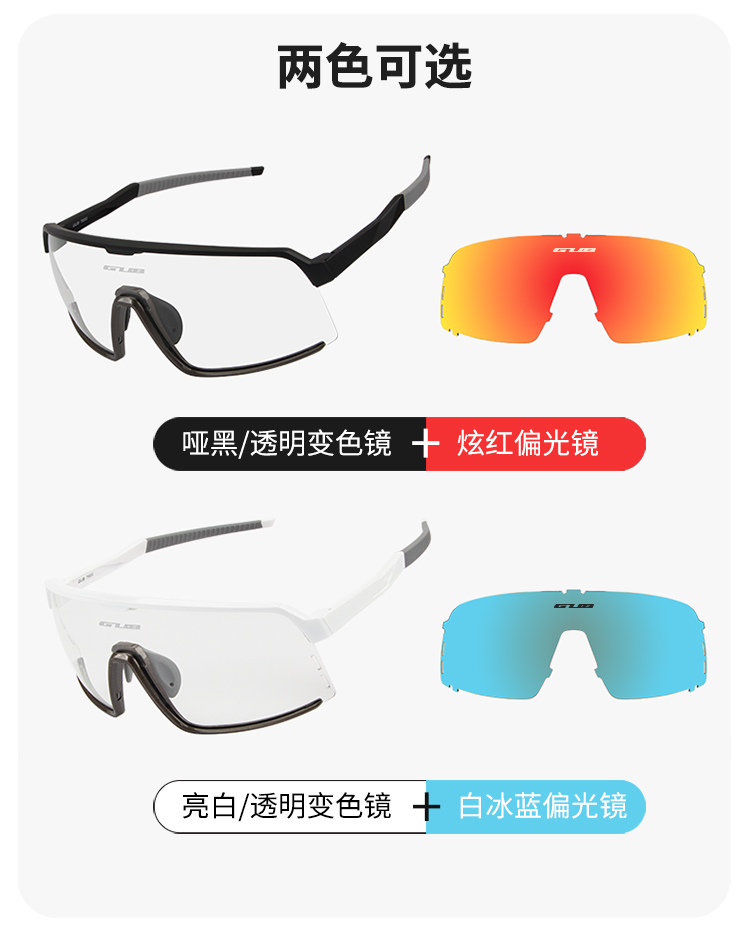 顏色:啞黑/透明變色+炫紅偏光、亮白/透明變色+白冰藍偏光