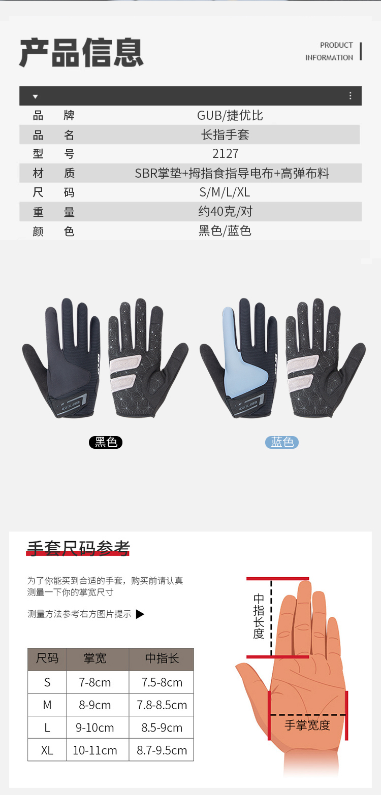 名稱:GUB 2127 長指騎行手套