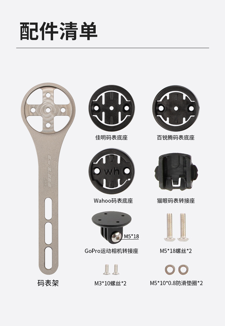 配置:配運(yùn)動相機(jī)轉(zhuǎn)接座,wahoo、佳明、百銳騰和貓眼碼表接座