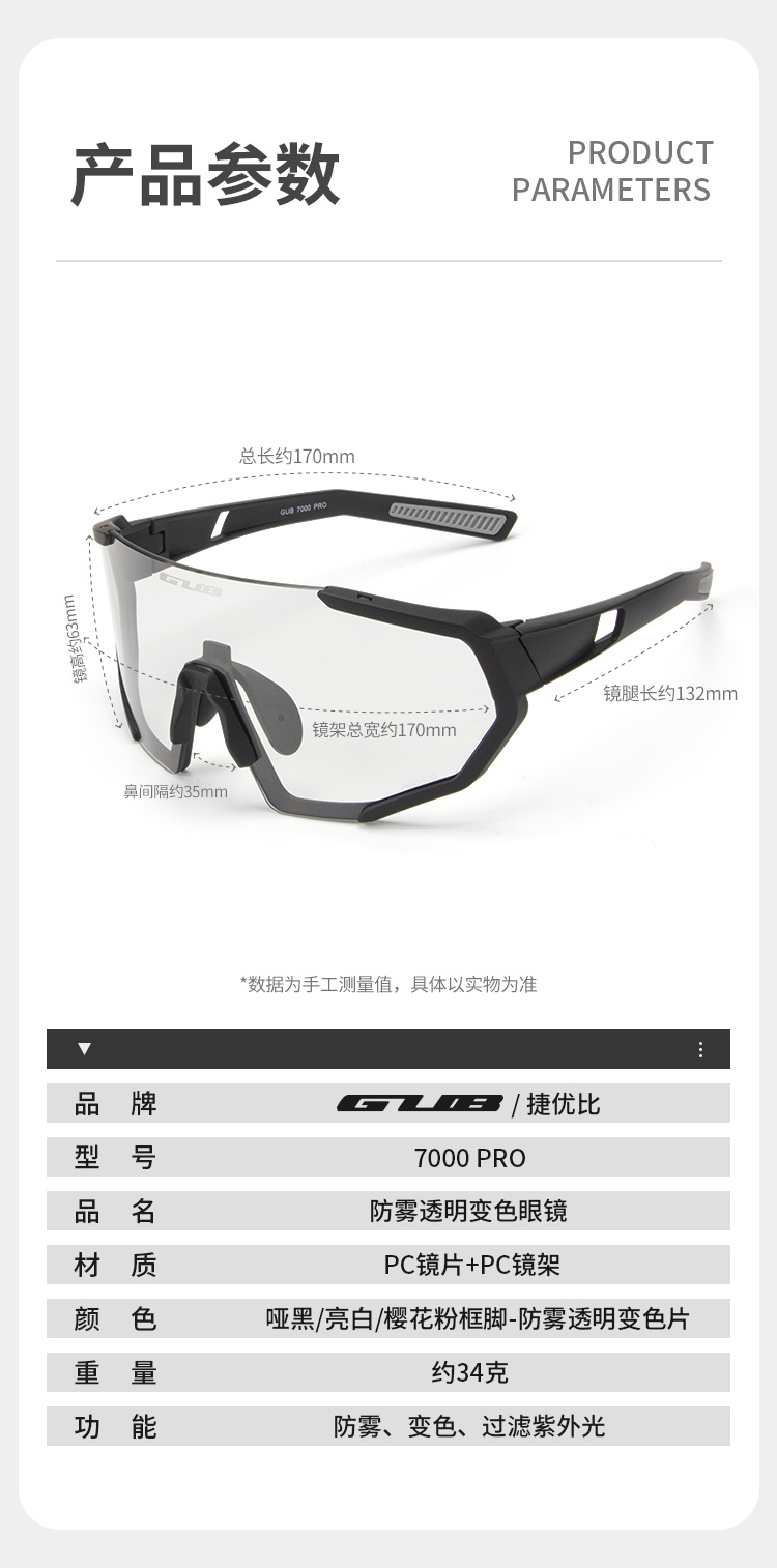 名稱:GUB 7000 PRO 防霧變色眼鏡