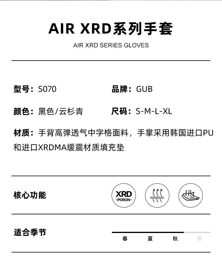 名稱:GUB S070 短指騎行手套