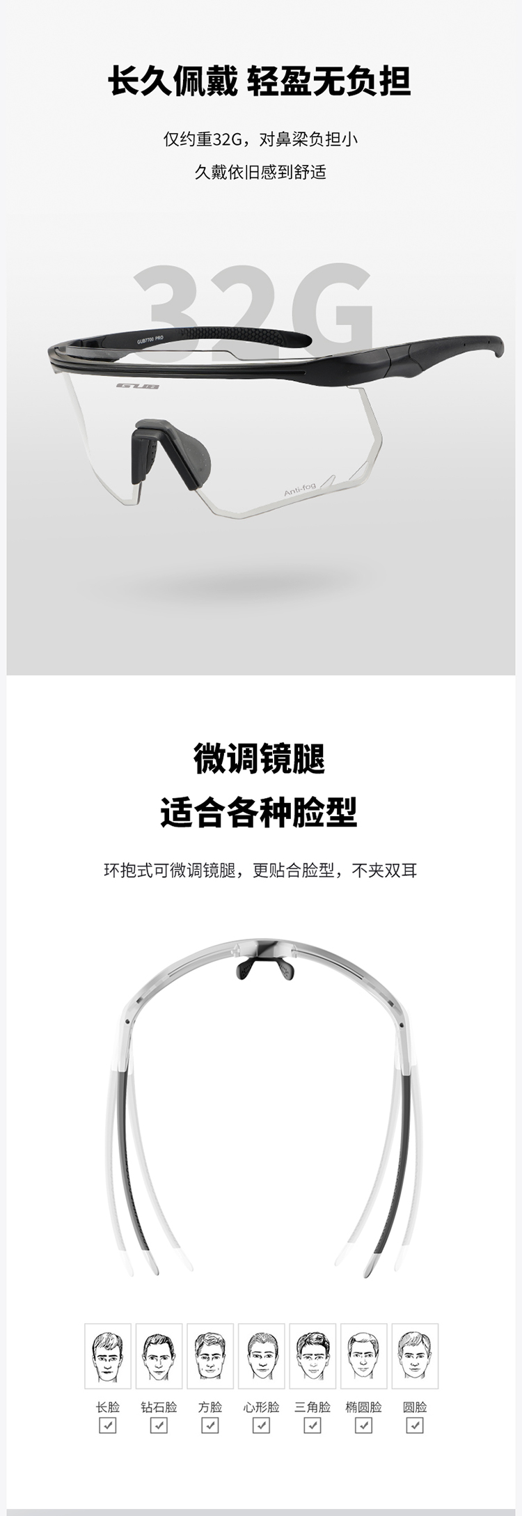 顏色:啞黑/防霧透明變色片、亮白/防霧透明變色片