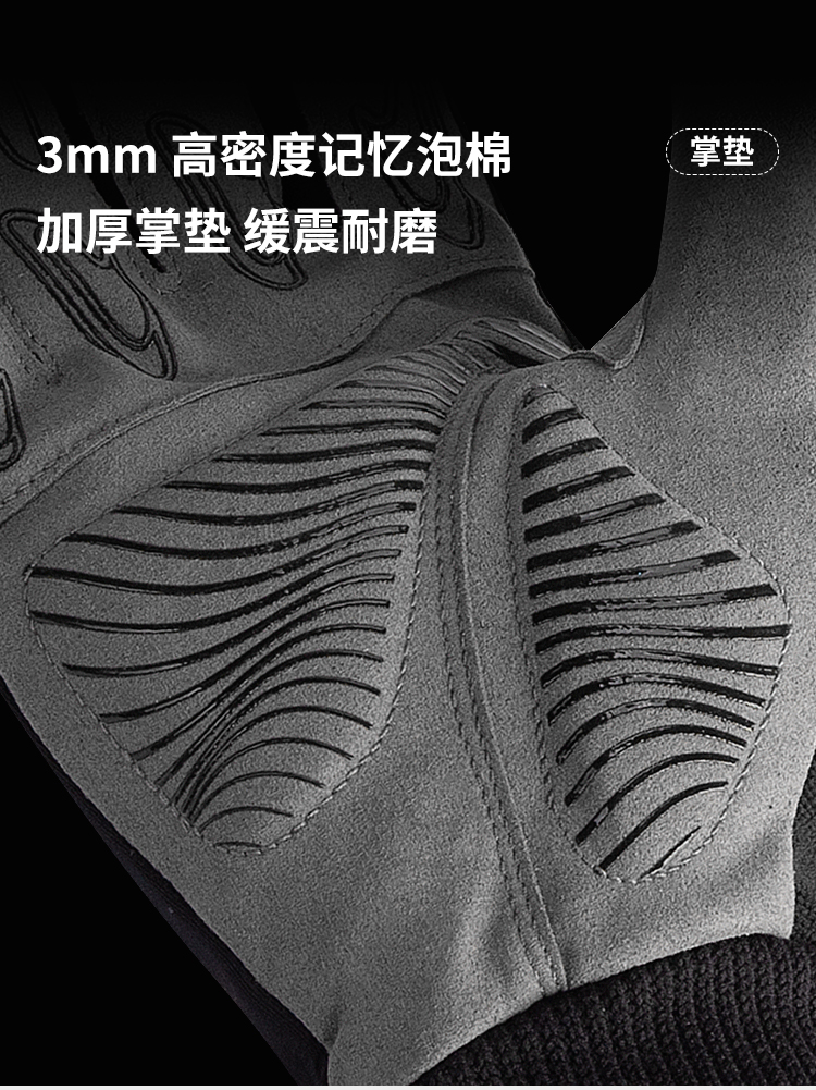 材質(zhì):30D牛奶絲手背、搖粒絨內(nèi)里、超纖手掌、3MM記憶掌墊、Visa擦汗布、拇指食指導(dǎo)電布