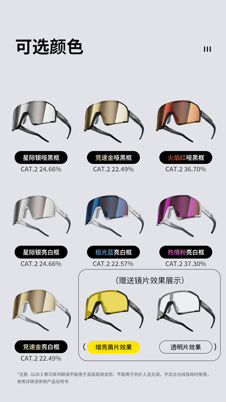 顏色:競速金啞黑框/星際銀啞黑框/競速金亮白框/星際銀亮白框/火焰紅啞黑框/極光藍(lán)亮白框/熱情粉亮白框